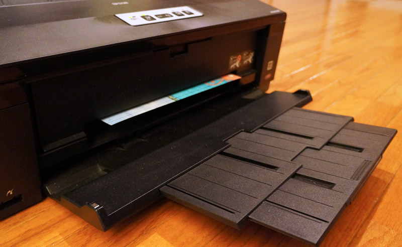10. Wait for the page to come out of the printer. Be sure the tray is open for the layout to drop. It may take a minute or so for you to see the paper coming out. Since you are printing it borderless, there is a lot of paper to cover.