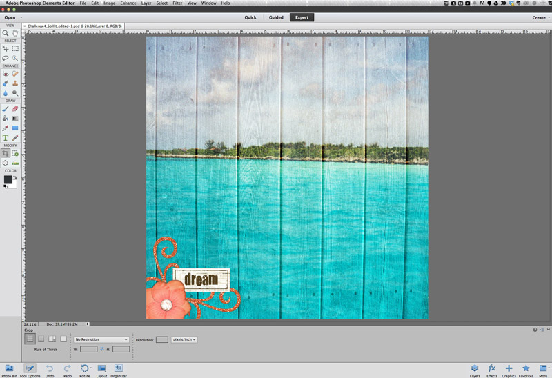 1. The first step in printing your 12×12 page is to create a digital scrapbook page. I use Adobe Photoshop Elements to create my digital scrapbook pages. The Epson 1430 comes with Photoshop Elements. Create the layout in 12′ x 12′ size (inches.)