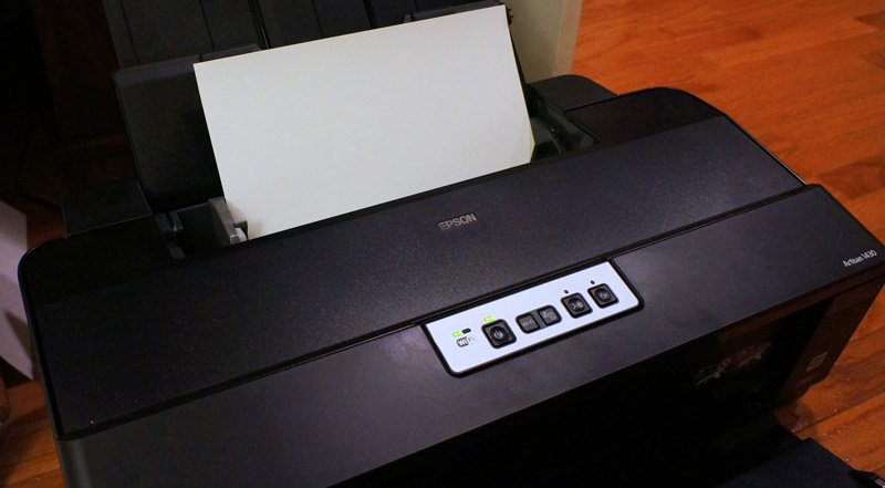 2. Put 12×12 in paper into the Epson 1430. Very important step that I often forget to do. I pull out all the paper that is in the printer and load 1 sheet of 12×12 paper. I also use Epson paper because printers are calibrated to use their own paper and I find I get the best results.