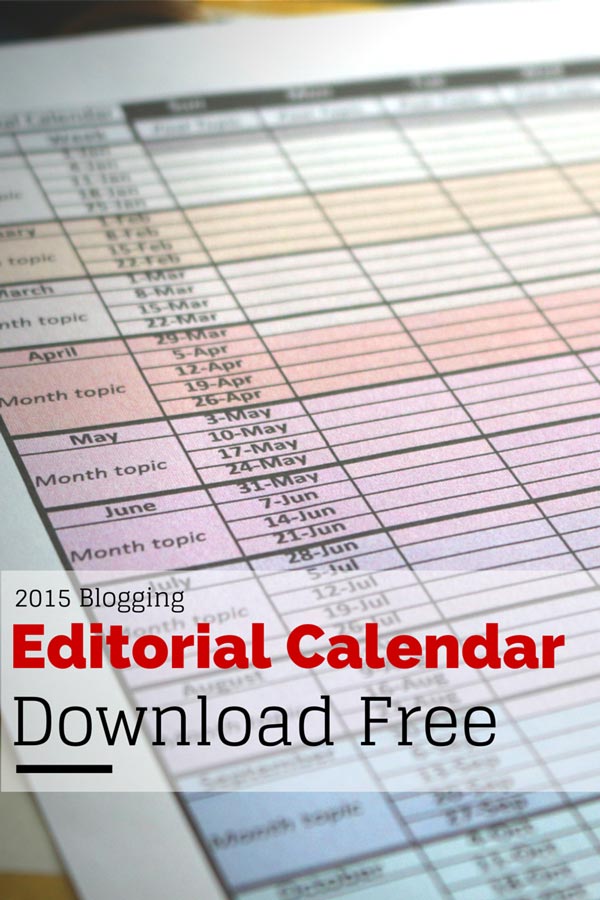 For the last 3 years, I have shared my editorial calendar template with you. The free 2015 editorial calendar is available now (end of the post.) If you would like the month-on-one-page version, you will need to sign up for my newsletter at the end of this post.