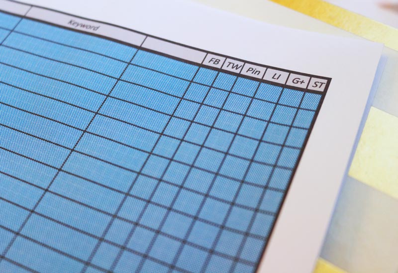 “…one month per page and includes room for keywords and you can check off when you’ve shared on your different social media channels.”